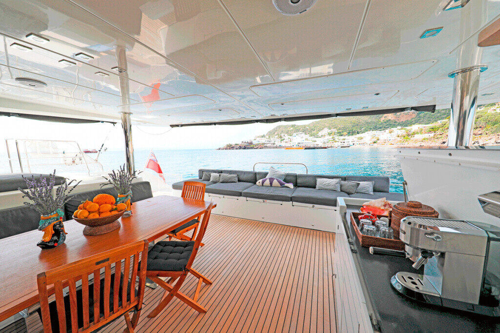 Vulcano welcomes sailors with its steaming crater, black-sand beaches, and sulfur-scented thermal waters — a reminder that the island is alive beneath your feet. Rugged cliffs, natural pools, and warm sea vents create an atmosphere that is both raw and captivating.